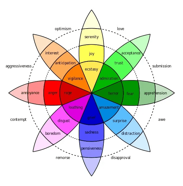 Robert Plutchik is credited for his Psycho-Evolutionary Theory of Emotion. He argued for eight basic emotions that can be broken down into four different emotional pairs. The Interaction Design Foundation suggests that in Plutchik’s theory, emotions can be mixed like paint, with “the idea being that blending different emotions will create different levels of emotion and response.”
