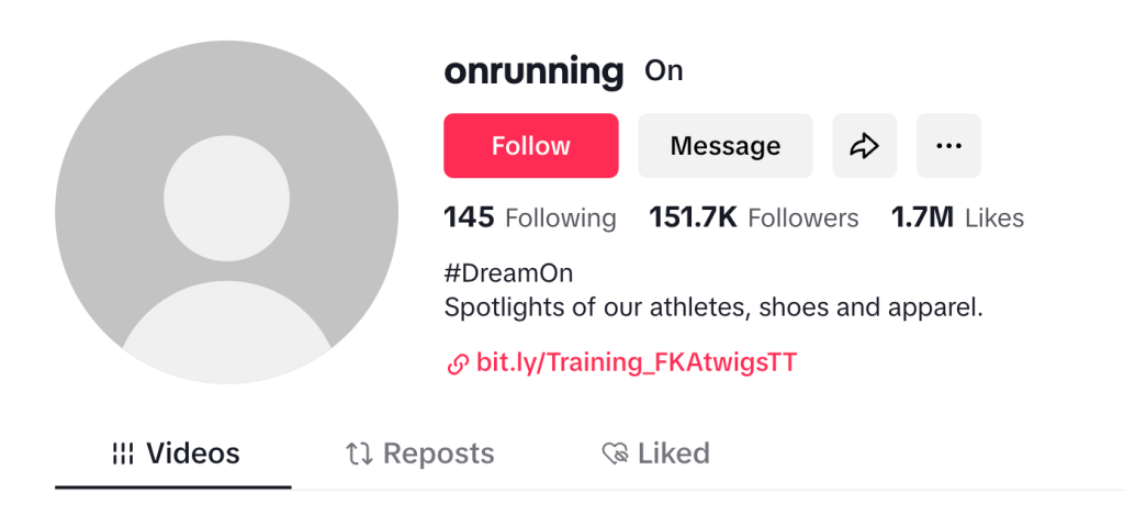 In terms of video content, On performs better on YouTube than they do TikTok. Despite the current situation around the TikTok ban in the US, On should reevaluate the type of video content they make on the TikTok platform. The brand has the opportunity to reach younger audiences on the platform, and not doing so would be a missed opportunity.