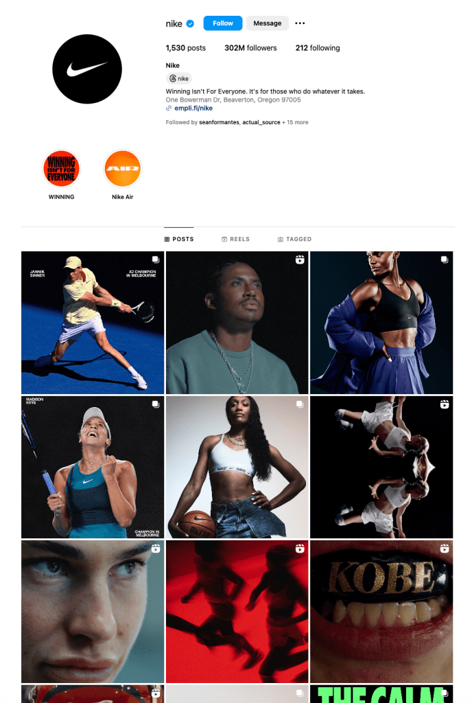 At a glance, On’s accounts are very similar to that of their larger competitors, such as Nike, Adidas, and Under Armour. They all have editorial-style photos and videos; being high produced and well-edited. Although all of these brands are well established and have great (and successful) social media strategies, this can make it harder for On to break through and differentiate themselves. Instead, On blends right into the mix.