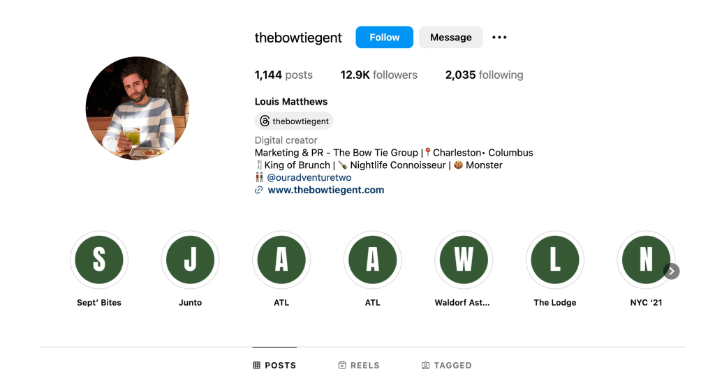 However, I was able to find some other South Carolina-based creators on Instagram who post lifestyle content – frequently including coffee – that would be a great fit for 7 Brew. One of them, Louis, make a blog all about different places and stops in the area, and is a micro-influencer with 12.9k followers.