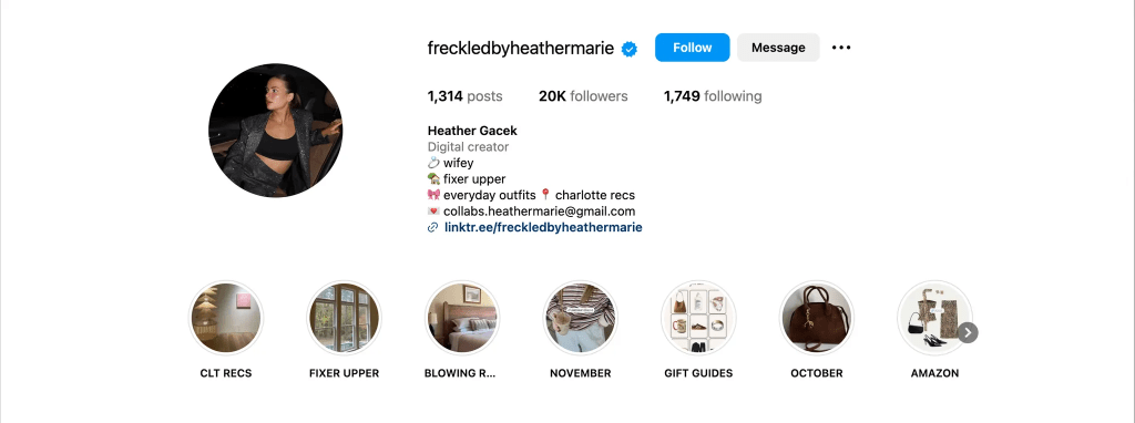 One creator that I think would be a perfect influencer for 7 Brew to use is a lifestyle influencer named Heather with 20k followers. Although I can’t see her engagement rate through hype Auditor, her most recent post garnered 11k likes, which is quite impressive.